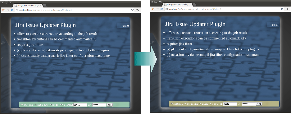 While maintaining our development infrastructure, we regularly have to deal with a plethora of feature and plugin wishes. Because balancing all these different wishes, requirements and purposes is so time-consuming, we considered how we might increase our performance in this area. We designed and tested a method for this in the context of a Jenkins upgrade. We then invested some more time to create a sample HTML5 presentation that you may like to use yourself to try out threshold voting workshops in action.